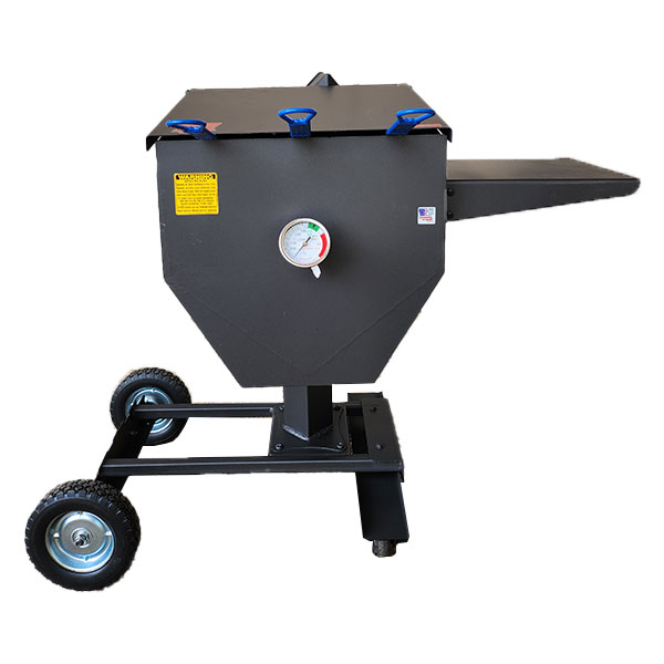 This Triple Basket Fryer by R&V Works is the perfect fryer for backyard fish fry or to serve french fries, onion rings, appetizers to go along with your BBQ. This fryer is also capable of cooking for your large parties or commercial events. Combining approximately 8 1/2 Gallons of oil with 90,000 BTU of heat potential, this portable deep fryer has the power to keep up with the demand of your patio cookouts, tailgating parties, and medium to large fish fries of 65 to 70 people per hour. Also being a multi Basket Fryer, you are able to fry different foods at the same time. This fryer is also perfect to fry up to two 14 lb. Turkeys. All of R&V Works fryer works with the Burner Flue Hovering in the cooking vat, positioned so that the excess breading and/or batter will fall to the bottom of the fryer where the oil is cooler. This prevents the oil from being scorched by the sediments laying directly in the heating zone which will very quickly ruin the quality of your cooking oil. This results in a 70% reduction in oil usage when compared to other deep frying systems. The Fryer also features a built-in 2 1/2″ thermometer making it easy to monitor the oil’s temperature. The fryer features 8″ solid rubber wheels and a front axle with castors making this fryer easy to move. Made from solid carbon steel with a high temp charcoal gray finish, this fryer will withstand many years of use. This fryer is set up for liquid propane and is for outdoor use only!