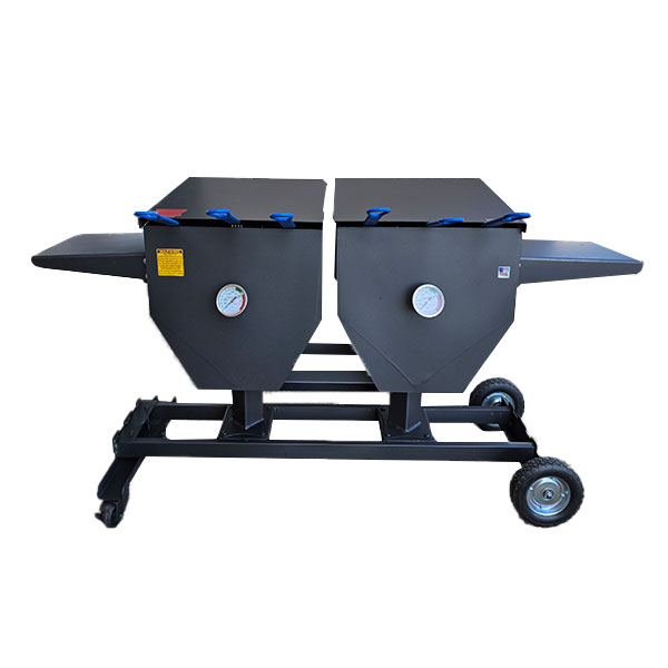 This Six Basket Fryer by R&V Works is our most popular large event fryer. Combining approximately two 8 1/2 Gallons of oil with 90,000 BTU of heat potential, this portable deep fryer has the power to keep up large fish fries of 150 people per hour. Also being a multi Basket Fryer, you are able to fry different foods at the same time. This fryer is also perfect to fry up to four 14 lb. Turkeys. All of R&V Works fryer works with the Burner Flue Hovering in the cooking vat, positioned so that the excess breading and/or batter will fall to the bottom of the fryer where the oil is cooler. This prevents the oil from being scorched by the sediments laying directly in the heating zone which will very quickly ruin the quality of your cooking oil. This results in a 70% reduction in oil usage when compared to other deep frying systems. The Fryer also features a built-in 2 1/2″ thermometer making it easy to monitor the oil’s temperature. The fryer features 8″ solid rubber wheels and a front axle with castors making this fryer easy to move. Made from solid carbon steel with a high temp charcoal gray finish, this fryer will withstand many years of use. This fryer is set up for liquid propane and is for outdoor use only!