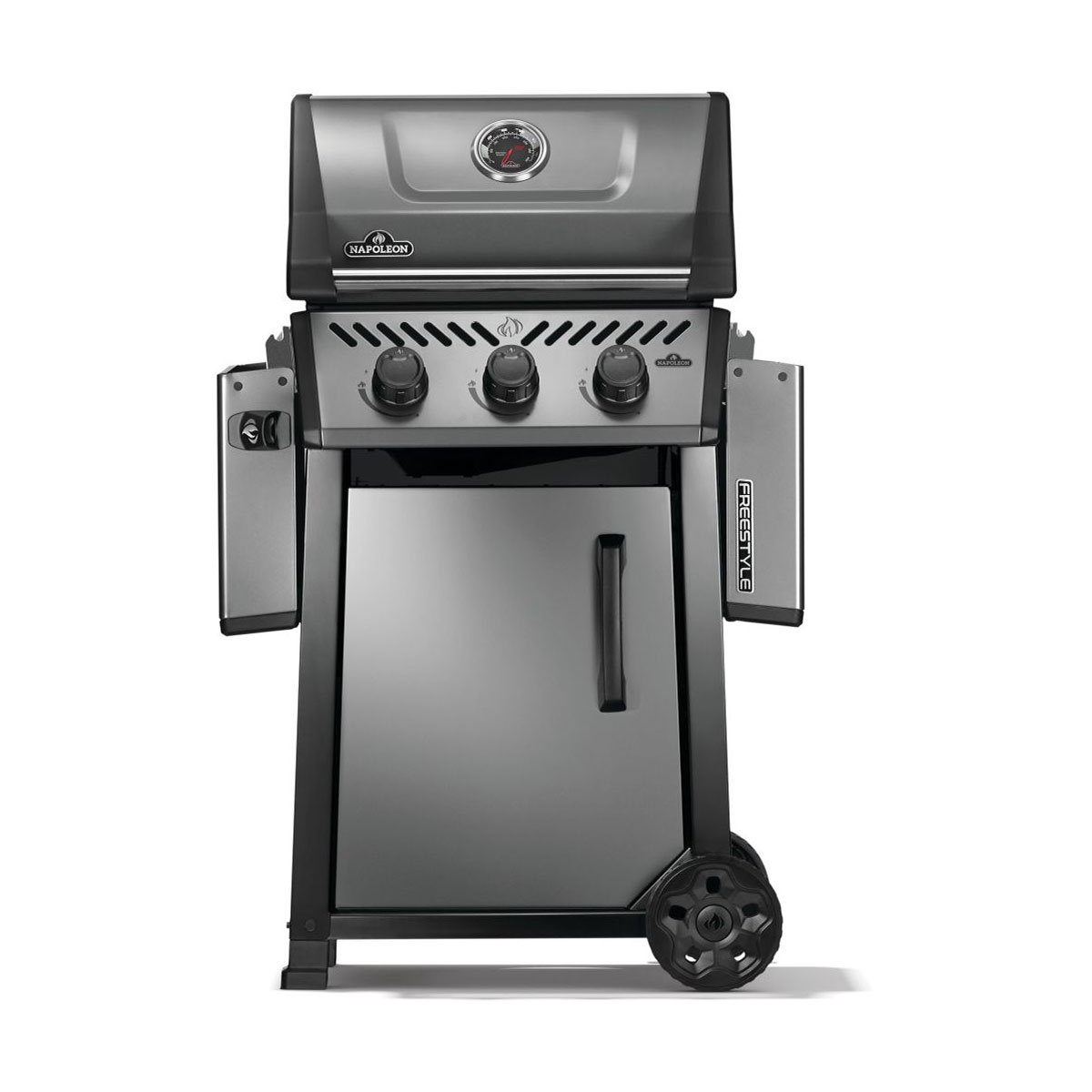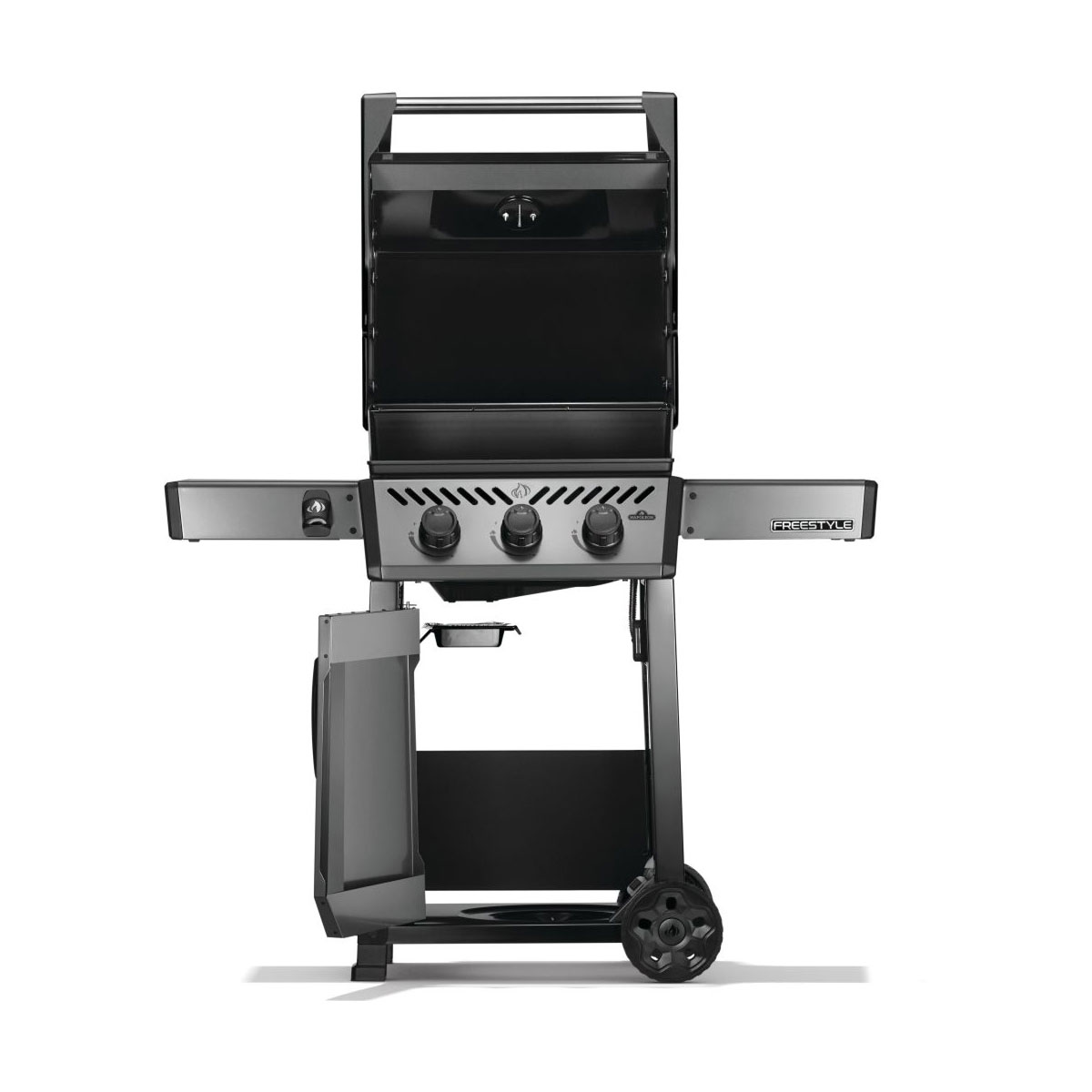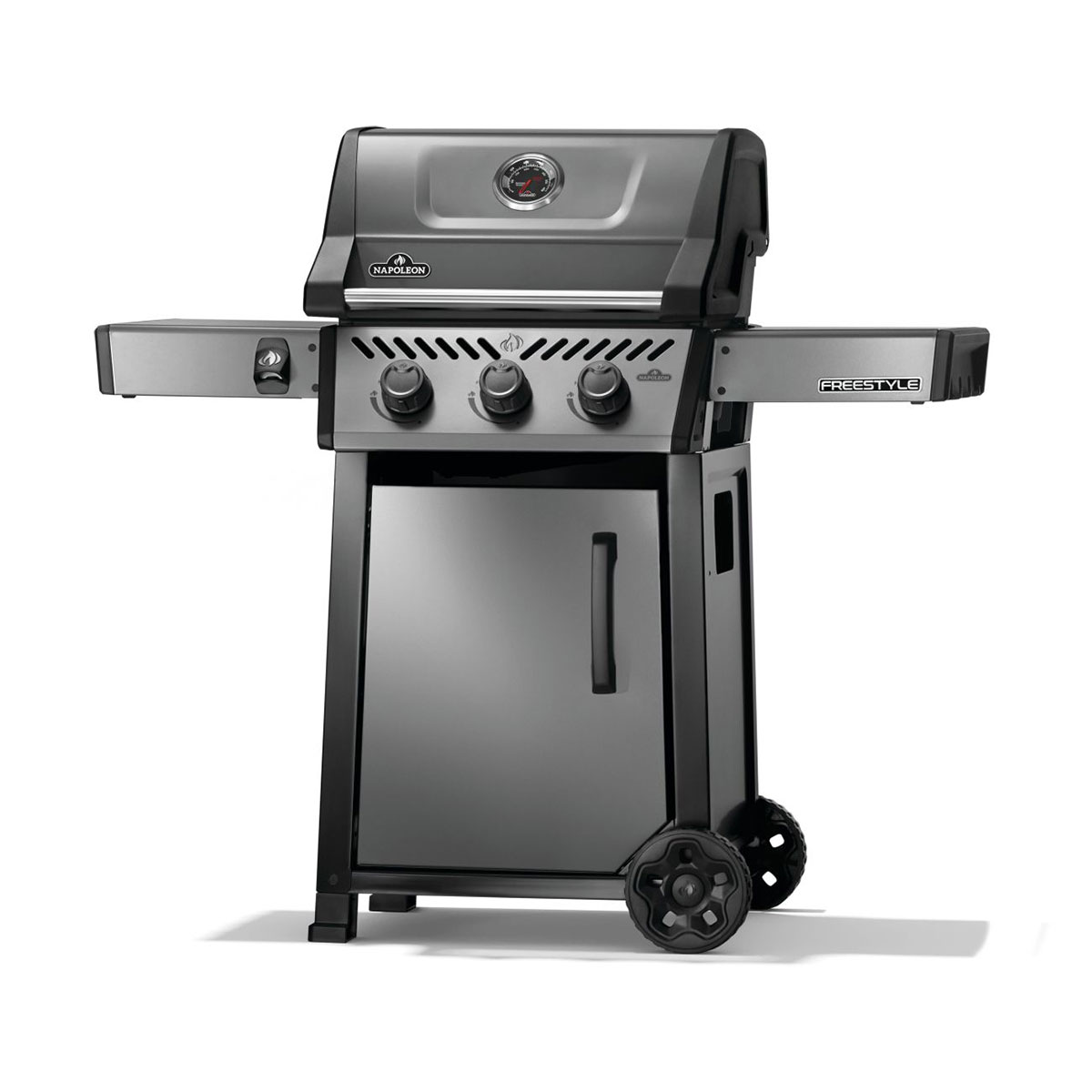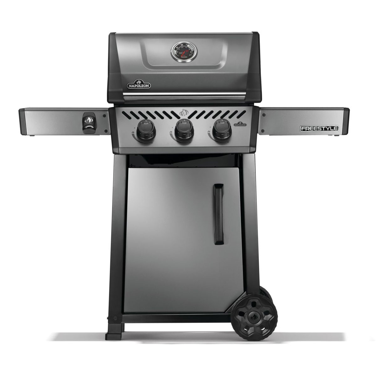 The Freestyle 365 Gas Barbecue is a compact grill with premium features and unbeatable value. Ignited by the instant JETFIRE ignition system that lights the main burners with a jet of flame easily, every time. Get the perfect sear over the cast iron porcelainized enamel cooking grids. Three stainless steel burners provide heat that can be easily controlled by ergonomic knobs and monitored by the onboard temperature gauge. The rugged wheels allow this barbecue to go where the action is, while the easy-to-fold side shelves, featuring tool hangers and a bottle opener, make sure that the Freestyle meets your lifestyle and space.